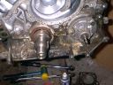 With the heads off, I went back to the front of the engine and removed the timing belt and water pump..