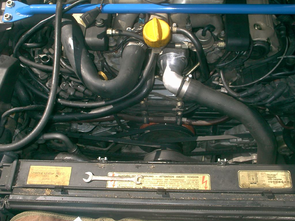 The old radiator installed in the car - notice the blue Devek crossmember.